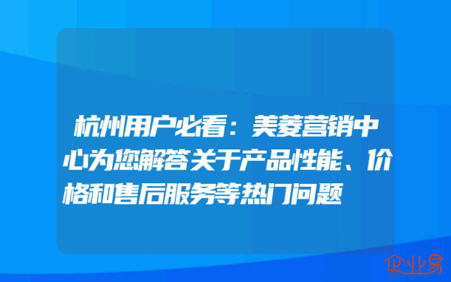 - 杭州用户必看:美菱营销中心为您解答关于产品性能、价格和售后服务等热门问题
