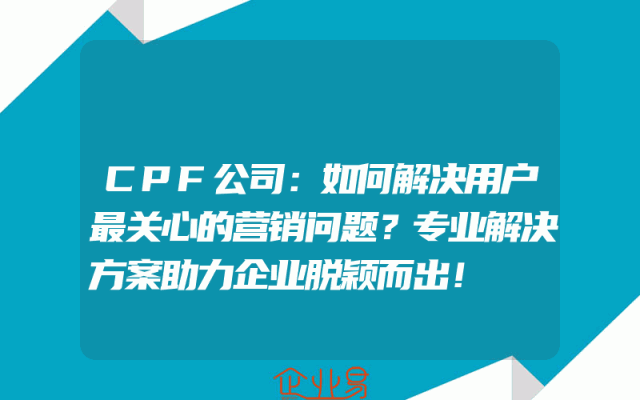 - CPF公司:如何解决用户最关心的营销问题?专业解决方案助力企业脱颖而出!