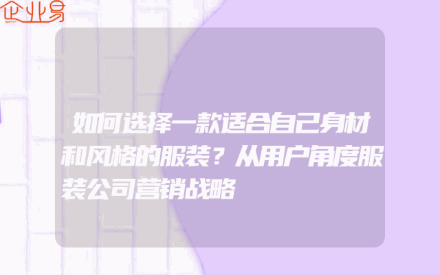 - 如何选择一款适合自己身材和风格的服装?从用户角度服装公司营销战略