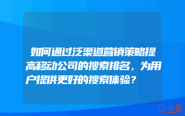 - 如何通过泛渠道营销策略提高移动公司的搜索排名,为用户提供更好的搜索体验?