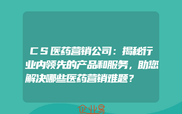 - CS医药营销公司:揭秘行业内领先的产品和服务,助您解决哪些医药营销难题?