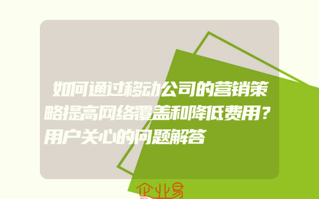 - 如何通过移动公司的营销策略提高网络覆盖和降低费用?用户关心的问题解答
