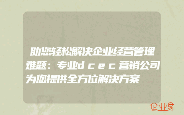 - 助您轻松解决企业经营管理难题:专业dcec营销公司为您提供全方位解决方案
