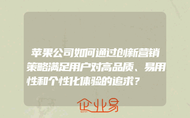 - 苹果公司如何通过创新营销策略满足用户对高品质、易用性和个性化体验的追求?苹果公司作为全球知名的科技巨头,一直以来都以其高品质的产品和卓越的用户体验而受到用户的喜爱。然而,随着市场竞争的加剧,苹果公司不得不不断创新其营销策略,以满足用户对高品