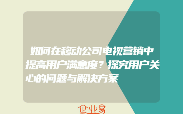 - 如何在移动公司电视营销中提高用户满意度?探究用户关心的问题与解决方案