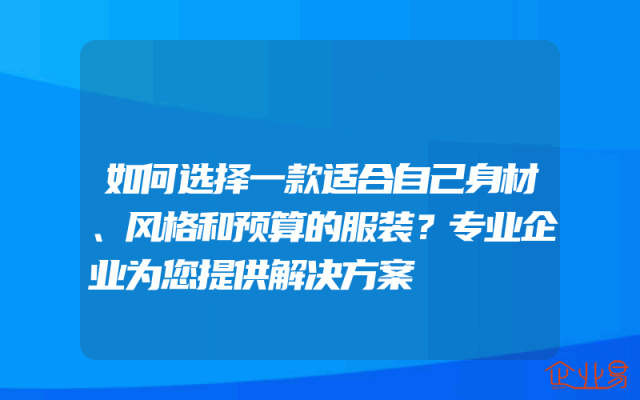 - 如何选择一款适合自己身材、风格和预算的服装?专业企业为您提供解决方案