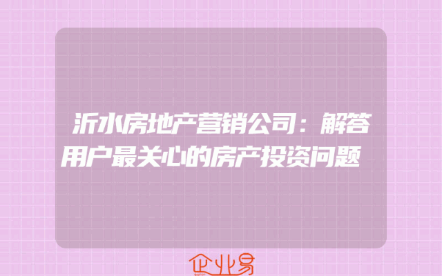 - 沂水房地产营销公司:解答用户最关心的房产投资问题