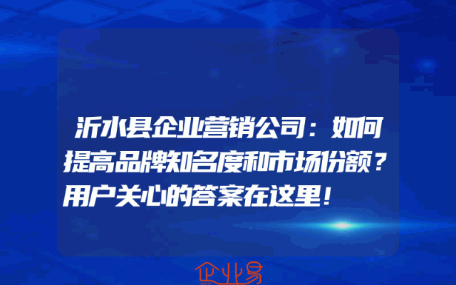 - 沂水县企业营销公司:如何提高品牌知名度和市场份额?用户关心的答案在这里!