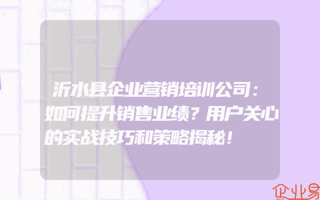 - 沂水县企业营销培训公司:如何提升销售业绩?用户关心的实战技巧和策略揭秘!