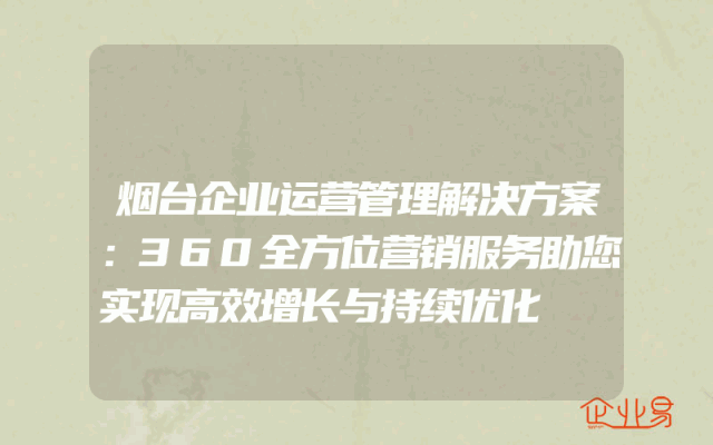 - 烟台企业运营管理解决方案:360全方位营销服务助您实现高效增长与持续优化