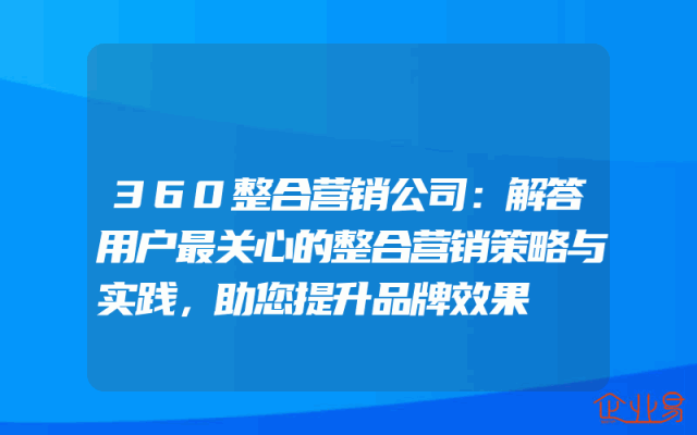 - 360整合营销公司:解答用户最关心的整合营销策略与实践,助您提升品牌效果