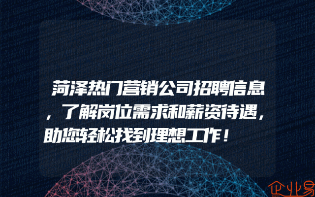 - 菏泽热门营销公司招聘信息,了解岗位需求和薪资待遇,助您轻松找到理想工作!