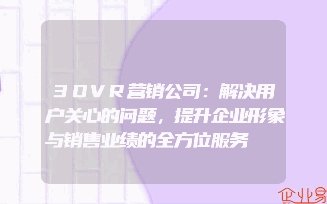 - 3DVR营销公司:解决用户关心的问题,提升企业形象与销售业绩的全方位服务在当今竞争激烈的商业环境中,企业需要不断地提升自身的形象和销售业绩。为了实现这一目标,许多企业开始寻求专业的营销服务公司来帮助他们制定有效的营销策略和实施计划。其中,3