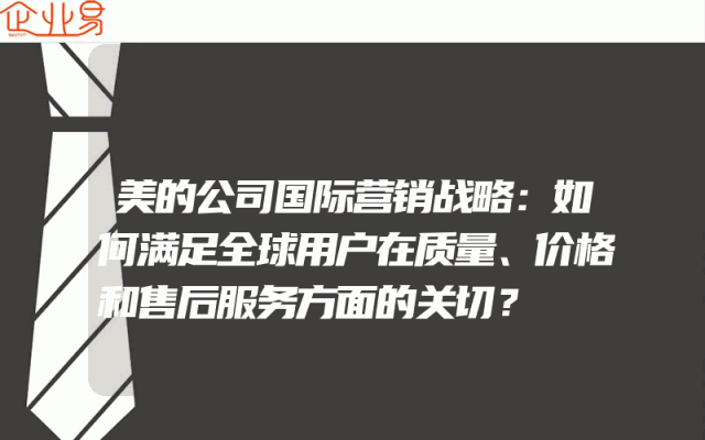 - 美的公司国际营销战略:如何满足全球用户在质量、价格和售后服务方面的关切?随着全球化进程的加速,美的公司在国际市场上的竞争也日益激烈。为了在激烈的市场竞争中脱颖而出,美的公司需要制定一套有效的国际营销战略,以满足全球用户在质量、价格和售后服务