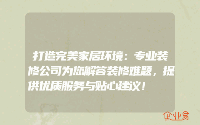 - 打造完美家居环境:专业装修公司为您解答装修难题,提供优质服务与贴心建议!