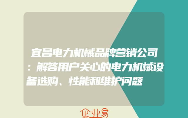 - 宜昌电力机械品牌营销公司:解答用户关心的电力机械设备选购、性能和维护问题