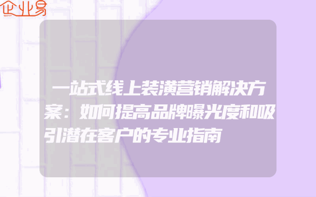 - 一站式线上装潢营销解决方案:如何提高品牌曝光度和吸引潜在客户的专业指南在当今的数字化时代,线上装潢营销已经成为了企业推广产品和服务的重要手段。随着互联网的普及和发展,越来越多的消费者开始通过网络来寻找和购买装潢产品和服务。因此,对于企业来说