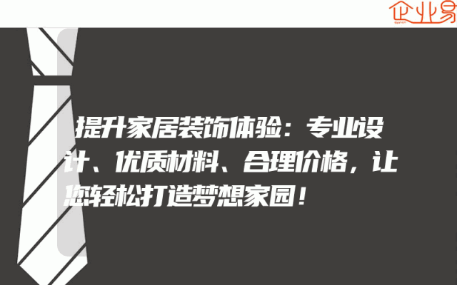 - 提升家居装饰体验:专业设计、优质材料、合理价格,让您轻松打造梦想家园!