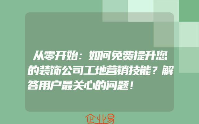 - 从零开始:如何免费提升您的装饰公司工地营销技能?解答用户最关心的问题!