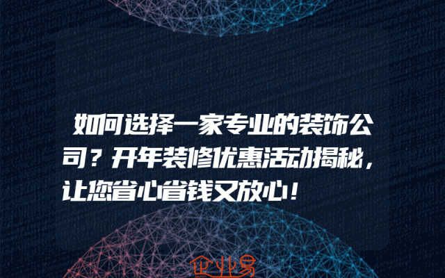 - 如何选择一家专业的装饰公司?开年装修优惠活动揭秘,让您省心省钱又放心!