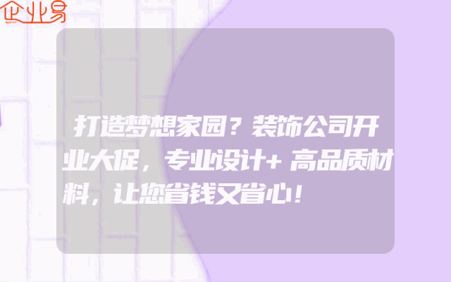 - 打造梦想家园?装饰公司开业大促,专业设计+高品质材料,让您省钱又省心!