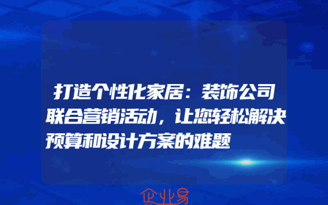 - 打造个性化家居:装饰公司联合营销活动,让您轻松解决预算和设计方案的难题