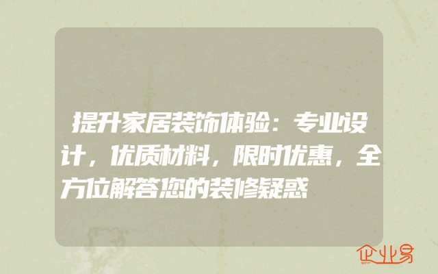 - 提升家居装饰体验:专业设计,优质材料,限时优惠,全方位解答您的装修疑惑