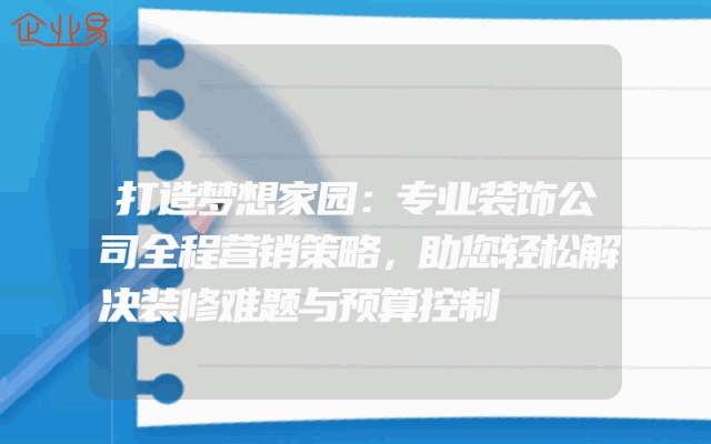 - 打造梦想家园:专业装饰公司全程营销策略,助您轻松解决装修难题与预算控制