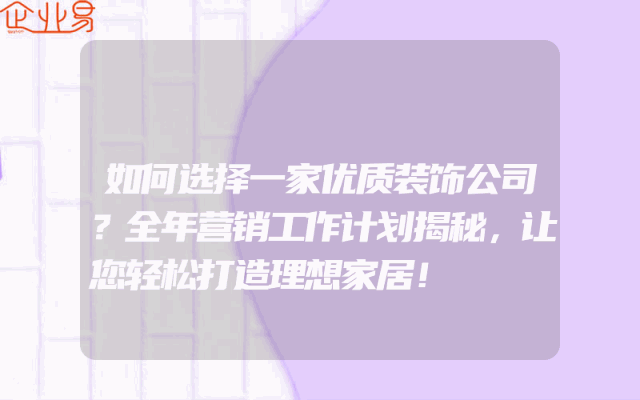 - 如何选择一家优质装饰公司?全年营销工作计划揭秘,让您轻松打造理想家居!