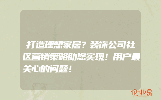 - 打造理想家居?装饰公司社区营销策略助您实现!用户最关心的问题!