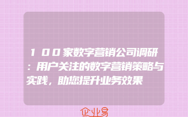 - 100家数字营销公司调研:用户关注的数字营销策略与实践,助您提升业务效果