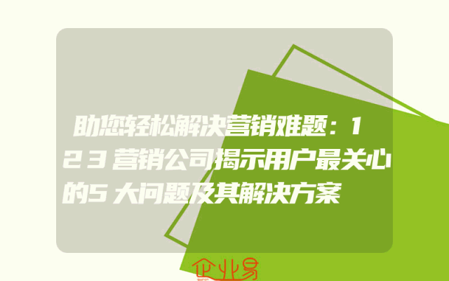 - 助您轻松解决营销难题:123营销公司揭示用户最关心的5大问题及其解决方案