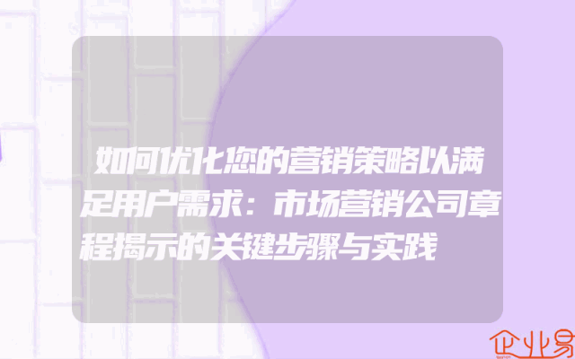 - 如何优化您的营销策略以满足用户需求:市场营销公司章程揭示的关键步骤与实践