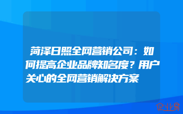 - 菏泽日照全网营销公司:如何提高企业品牌知名度?用户关心的全网营销解决方案