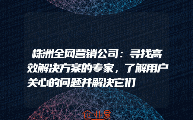 - 株洲全网营销公司:寻找高效解决方案的专家,了解用户关心的问题并解决它们