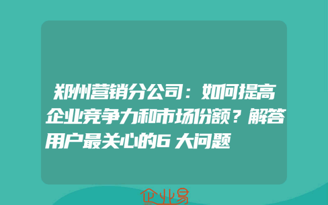 - 郑州营销分公司:如何提高企业竞争力和市场份额?解答用户最关心的6大问题
