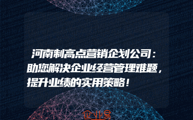 - 河南制高点营销企划公司:助您解决企业经营管理难题,提升业绩的实用策略!