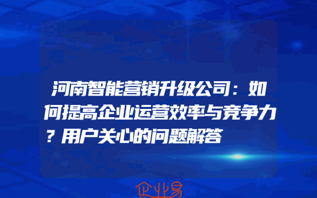 - 河南智能营销升级公司:如何提高企业运营效率与竞争力?用户关心的问题解答