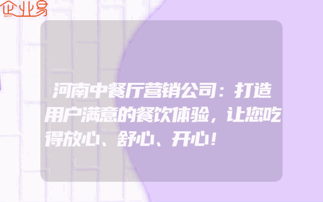 - 河南中餐厅营销公司:打造用户满意的餐饮体验,让您吃得放心、舒心、开心!