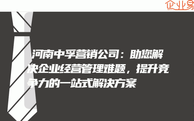 - 河南中孚营销公司:助您解决企业经营管理难题,提升竞争力的一站式解决方案