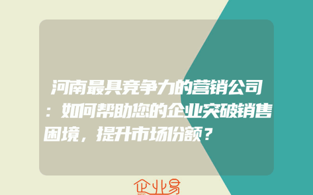 - 河南最具竞争力的营销公司:如何帮助您的企业突破销售困境,提升市场份额?