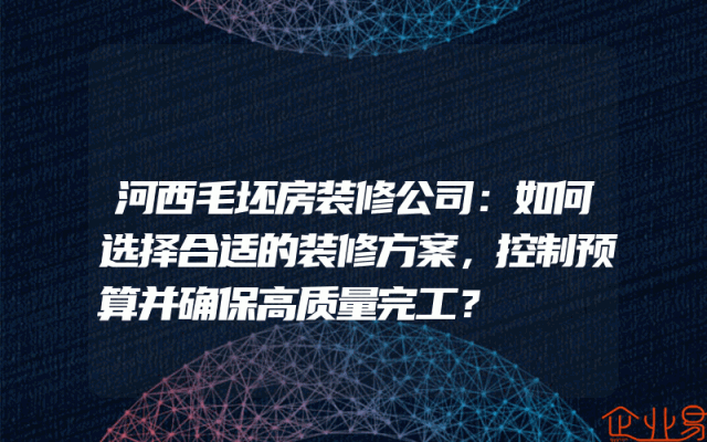 - 河西毛坯房装修公司:如何选择合适的装修方案,控制预算并确保高质量完工?
