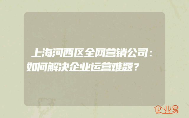 - 上海河西区全网营销公司:如何解决企业运营难题?