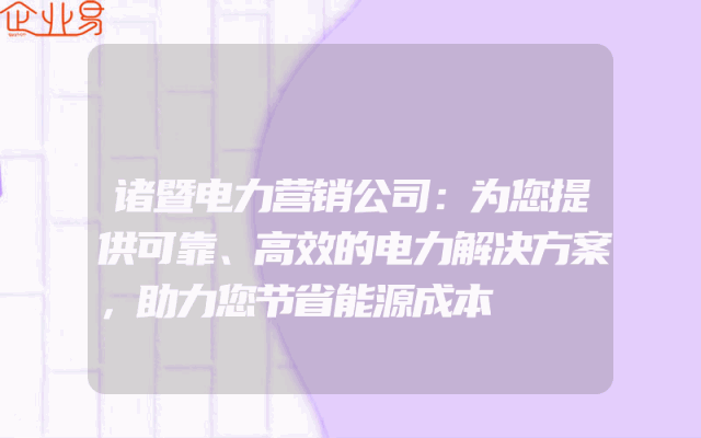 - 诸暨电力营销公司:为您提供可靠、高效的电力解决方案,助力您节省能源成本