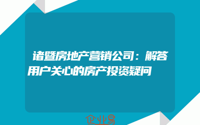 - 诸暨房地产营销公司:解答用户关心的房产投资疑问