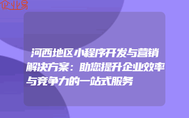 - 河西地区小程序开发与营销解决方案:助您提升企业效率与竞争力的一站式服务