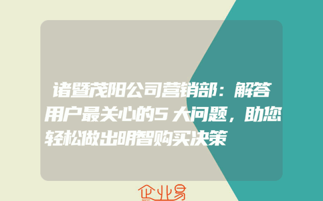 - 诸暨茂阳公司营销部:解答用户最关心的5大问题,助您轻松做出明智购买决策
