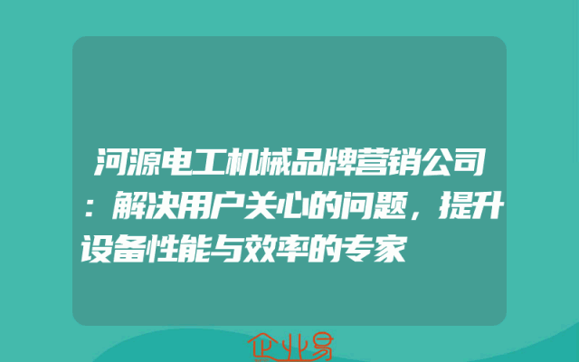 - 河源电工机械品牌营销公司:解决用户关心的问题,提升设备性能与效率的专家