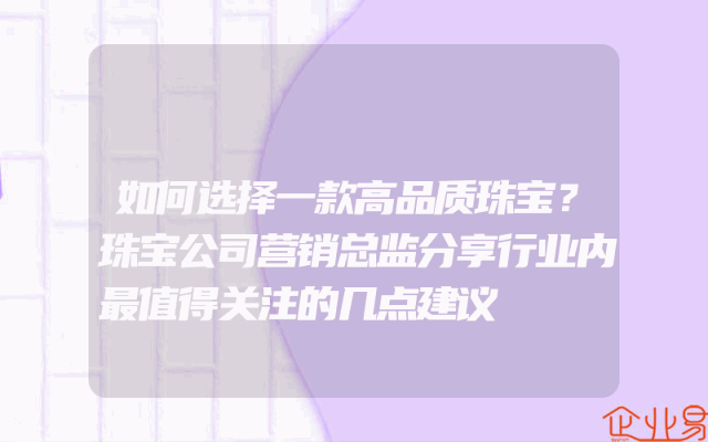 - 如何选择一款高品质珠宝?珠宝公司营销总监分享行业内最值得关注的几点建议
