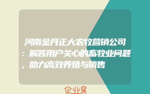 - 河南金丹正大农牧营销公司:解答用户关心的畜牧业问题,助力高效养殖与销售